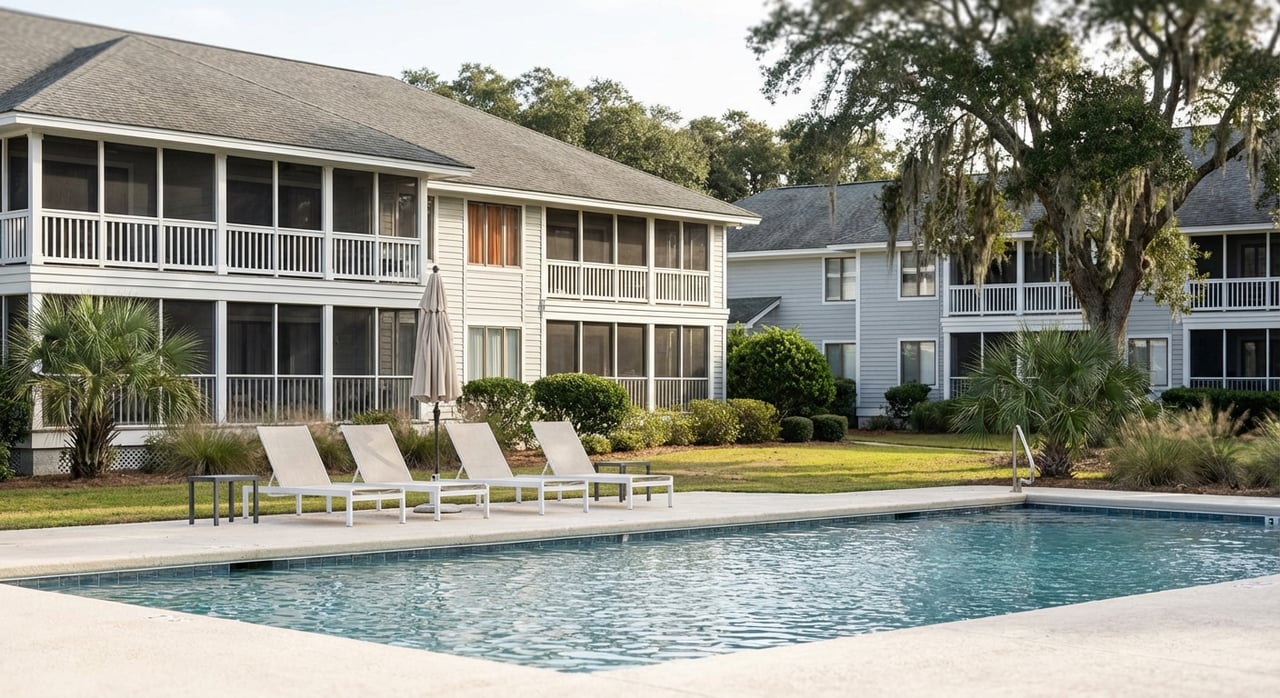 We ended up the owners of a beautiful condo, overlooking the pond surrounding the 17th green of True Blue Golf Course.